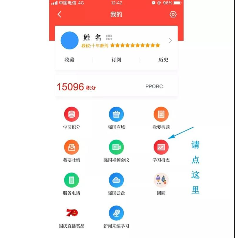 第三步,在“学习报表”页面上,点击“年度积分”即可查看。