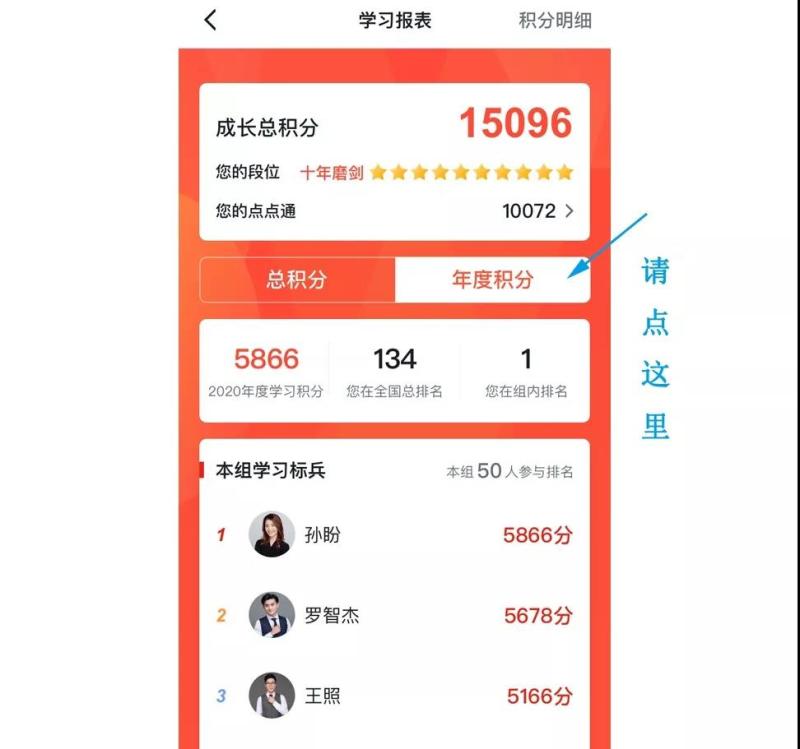 2020年度积分,从零开始,再也不用为起步晚而赶不上前面的同学而发愁了。后起步的同学们,也有机会登上“年度积分”学习标兵榜。2020年1月2日后,在“我的-学习报表”中,既可查询历史总积分,又可查询2020年度积分。
