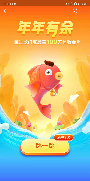 2、然后在年年有余的页面上点击下面的“跳一跳”选项,但是要注意自己的活动次数哦!
