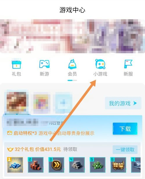 3、进入到“游戏中心”界面,点击“小游戏”。