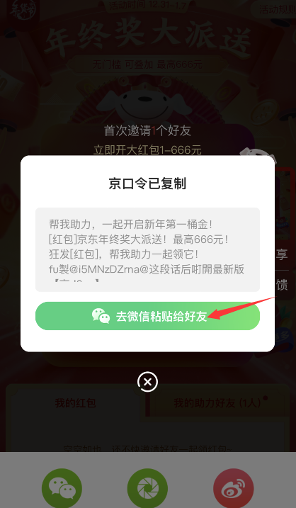 京东开门红红包如何分享到微信?