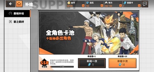 玩家们点开游戏之后,在补给中,抽取角色。每一次抽取需要一个能量卡,连抽十次必会获得一个随机角色,但是云雀的在这些卡池中非常难获得,所以大家可以等待云之羁绊出现之后,看看是否有云雀再来抽取。
