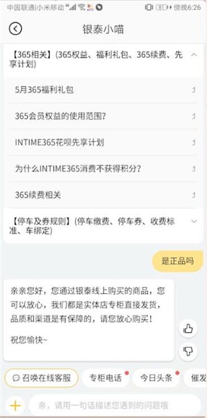 在喵街下单,后台系统会提醒客服或者导购送货去商场快递点,或者你也可以亲自试验一下能不能现场提货,货品是不是来自银泰。如果真的觉得自己收到了假货,也可以申请退换货。