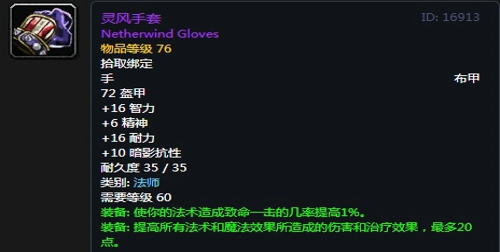 灵风手套:手套,出自黑翼之巢副本埃博诺克,弗莱格尔,费尔默掉落,无法附魔。
