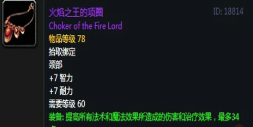 火焰之王的项圈:项链,出自熔火之心副本拉格纳罗斯掉落,无法附魔。