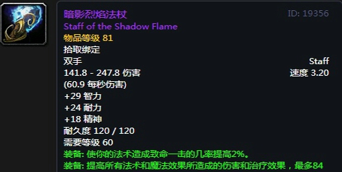 暗影烈焰法杖:双手法杖,出自黑翼之巢奈法利安掉落,推荐附魔法术能量。