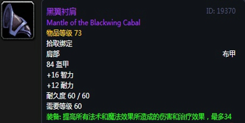 黑翼衬肩:肩甲,出自黑翼之巢副本狂野的拉佐格尔掉落,推荐附魔多彩黎明衬肩。