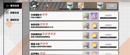 每日任务:只有该任务区内才是有着提升经验的效果,其他的任务都是材料,每一点加经验的成分。