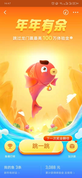 支付宝近期推出了一个鲤鱼跳龙门的体验金活动,可以领取不少的余额宝体验金,支付宝鲤鱼跳龙门怎么玩呢,下面就和小编一起来看看支付宝鲤鱼跳龙门的技巧吧!