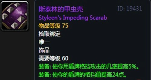 17、斯泰林的甲虫壳:饰品1,黑翼之巢副本弗莱格尔掉落,无法附魔。