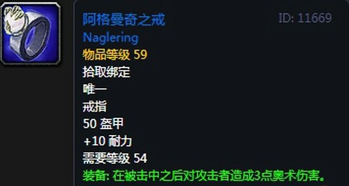 15、阿格曼奇之戒:戒指1,黑石深渊副本傀儡统帅阿格曼奇掉落,无法附魔。