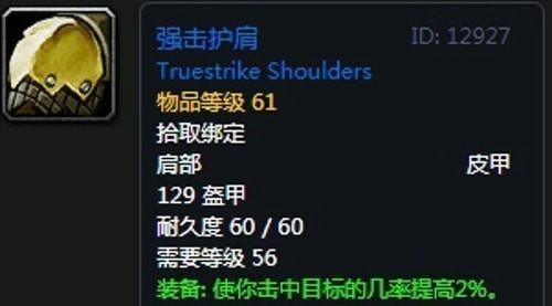 基础属性:129护甲,装备效果使你击中目标的几率提高2%,+24 攻击强度。