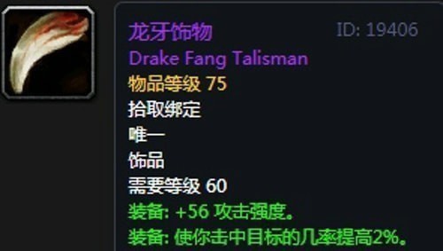 龙牙饰物:饰品1,出自黑翼之巢副本埃博诺克掉落,无法附魔。