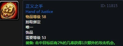 正义之手:饰品2,出自黑石深渊副本安格弗将军掉落,无法附魔。