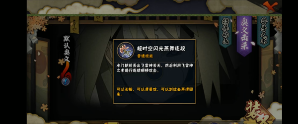 超时空闪光燕舞连段:水门朝前丢出飞雷神苦无,然后利用飞雷神之术进行连续瞬移攻击。