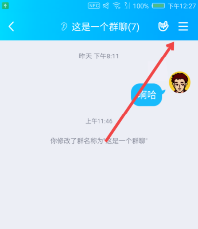 进入到该群聊后,点击界面右上角的三条横杠。