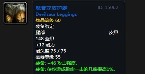 10、魔暴龙皮护腿:腿部,制皮专业制作,推荐附魔次级奥术融合。
