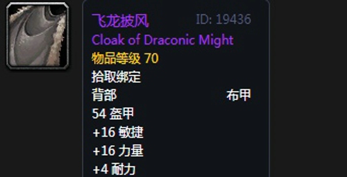 4、飞龙披风:披风,出自黑翼之巢副本小怪掉落,推荐附魔次级敏捷;