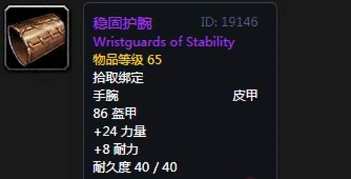 6、稳固护腕:护腕,出自熔火之心副本萨弗隆先驱者,鲁西弗隆,基赫纳斯,沙斯拉尔均可掉落,推荐附魔超强力量;