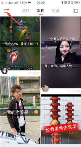 1、在快手极速版上无法查看收藏视频,但是在快手普通版上可以,打开快手普通版,点击左上角三条横杆