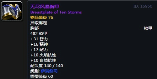 3、无尽风暴胸甲:紫色品质锁甲上衣,出自黑翼之巢副本奈法利安掉落。