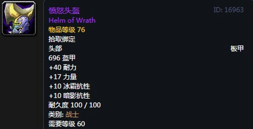 4、愤怒头盔:紫色品质板甲头部,出自奥妮克希亚掉落。