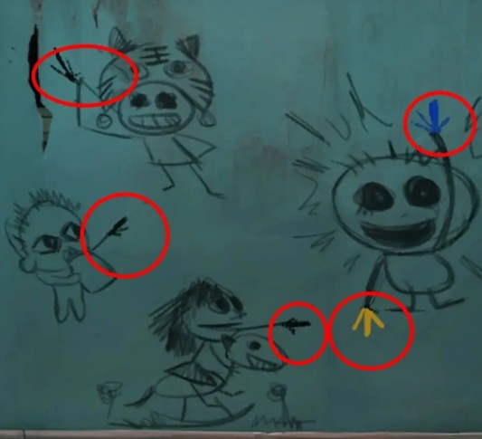 2、进入房间:使用密码【58339】打开右侧的门,进入房间后,查看左边的楼梯间并记录墙上的图案提示。