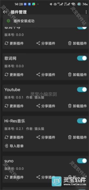 6、插件安装成功后,在插件管理中就能看到导入的乐库了