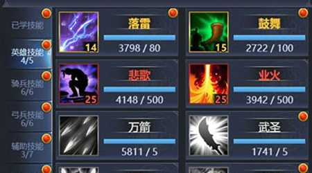 思路分析:周瑜自带的天赋以及自带技能业火,可打出高额的伤害,同时也是最优先学习的技能;其次每提升一点魅力,英雄技能伤害就可增加2%,则可以从魅力比拼的技能中优先选择鼓舞与悲歌,最后一个技能推荐学习落雷,避免近战没有技能释放而兵种也所剩无几的尴尬局面。