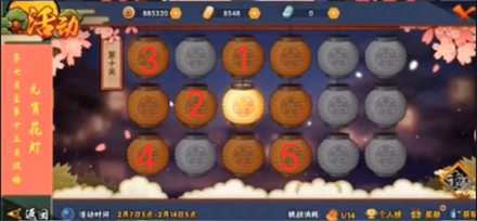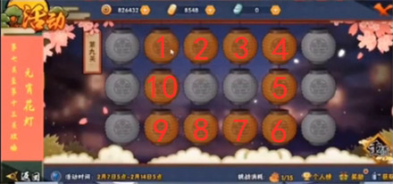 按照上图顺序点击8个花灯即可过关,这关难度还是比较高的,直接根据图片来就可以了。