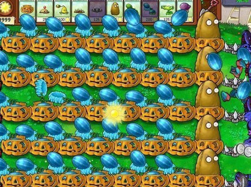 这套阵容以防御为主,前排种植7排高坚果并全部套上南瓜头,能有效阻挡除巨人僵尸外的所有敌人。这种布阵方式虽然节奏较慢,但能确保防线稳固,玩家可以安心发展后方经济。