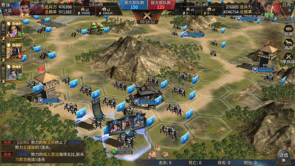 国战过程中,消灭敌方部队,击破对方箭塔,大本营都能获得大量国战功勋。国战胜利后,将以国战功勋排名发放丰厚的国战奖励。同时国战胜利将占领对方城池,如此循序渐进,逐渐扩充自己方的势力范围,完成割据一方,统军吞天下之路!