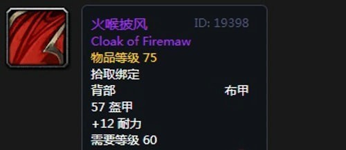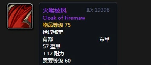 火喉披风:披风,出自黑翼之巢副本费尔默掉落,推荐附魔次级敏捷。