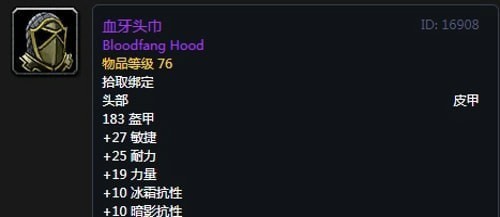 血牙头巾:头部,出自奥妮克希亚掉落,推荐附魔次级奥术融合。