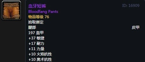 血牙短裤:腿部,出自熔火之心副本拉格纳罗斯掉落,推荐附魔次级奥术融合。