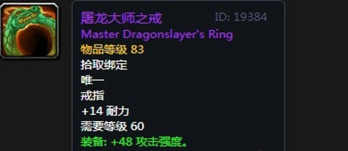 屠龙大师之戒:戒指2,出自黑翼之巢副本任务获取,无法附魔。