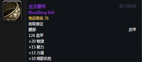 血牙腰带:腰带,出自黑翼之巢副本堕落的瓦拉斯塔兹掉落,无法附魔。