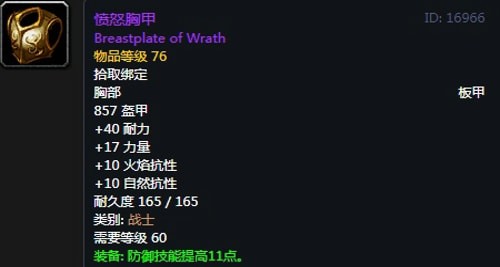 5、愤怒胸甲:胸甲,黑翼之巢副本奈法利安掉落,推荐附魔极效生命。