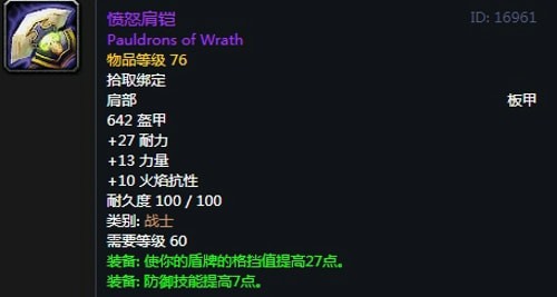 3、愤怒肩铠:肩部,黑翼之巢副本克洛玛古斯掉落,推荐附魔多彩黎明衬肩。