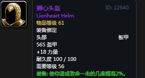 1、狮心头盔:头部,出自锻造专业,推荐附魔次级奥术融合;