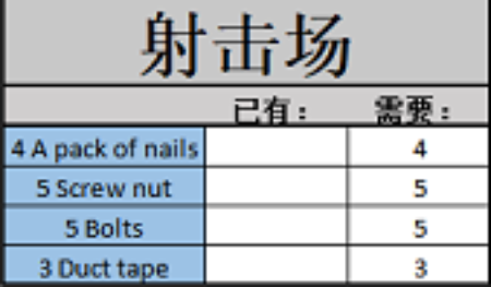 建造靶场的材料如下图: