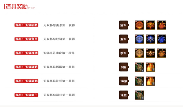 无双杯春季赛比赛排名: