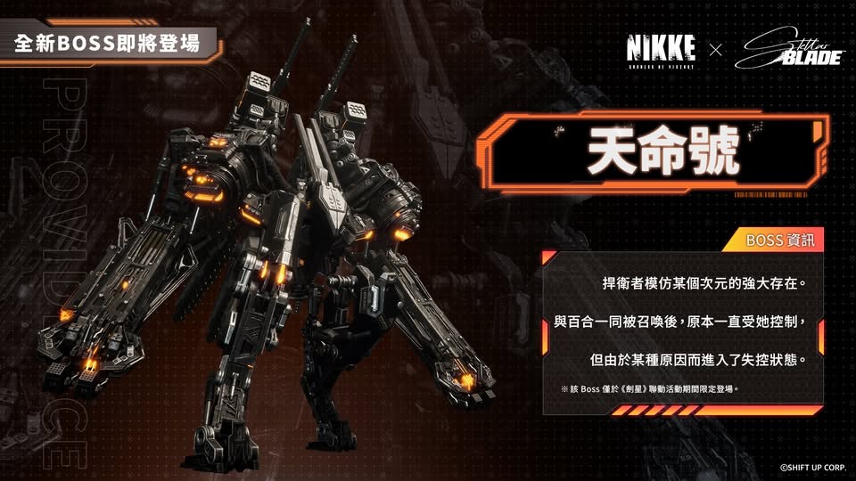 胜利女神NIKKE联动剑星,新角色、新皮肤、新BOSS以及新活动情报为您汇总。此次联动活动开启时间为6月12日,届时剑星里面的依芙、渡鸦、百合三位角色都会在胜利女神中登场,各位指挥官们,快来查看最新联动情报整理吧。