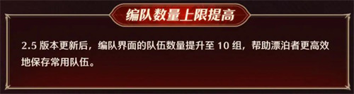2.5版本更新后,编队界面的队伍数量提升至10组,帮助漂泊者更高效地保存常用队伍。