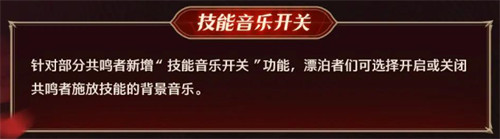 针对部分共鸣者新增“技能音乐开关”功能,漂泊者们可选择开启或关闭共鸣者施放技能的背景音乐。
