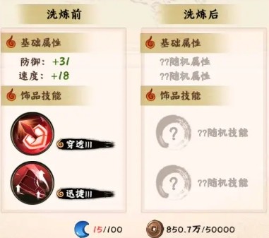 说到洗练,这里给大家一个小建议,最好是能把橙色饰品洗练出两条3级属性,这样就能最大程度地发挥饰品的实力,饰品当中比较推荐的首先是守护III,战斗开始的时候呀,它能给自身附加一个可以吸收自身生命上限21%的护盾,而且这个护盾还能持续2回合,其次连击III也很不错哦,释放必杀技后,有11%的概率再次释放,这就相当于多了一次输出机会,对于那些AOE伤害和单体最高输出的忍者来说,这个技能是最适合的。