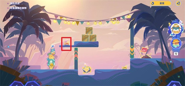 操作大个子继续前进,拾取空中的娜娜丝梨饼。然后走向右侧的黄色按钮区域。