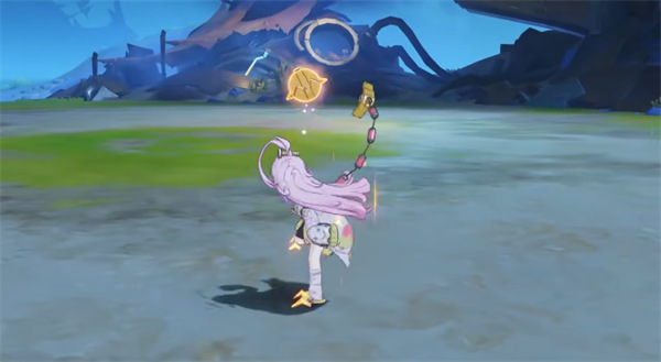 向前方投出「妙思捕手」,造成水元素伤害,同时将自己牵引至前方,并在移动结束时对身边的敌人造成水元素范围伤害。