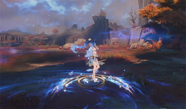 尤诺可施放重击·流变·月环,进入月相流转·新月状态,在此状态下尤诺将使用月弓进行攻击。