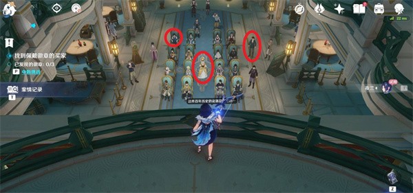 与会场侍者对话。在背包中装备【综像勘录仪】,即可进入调查阶段。